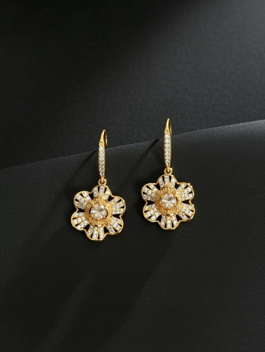 Elegant Floral Gold Necklace & Earrings Set